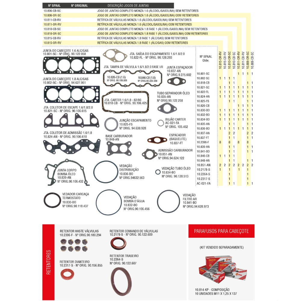 JOGO DE JUNTAS DO MOTOR SEM RETENTOR SPAAL - 10.806-CB-SC