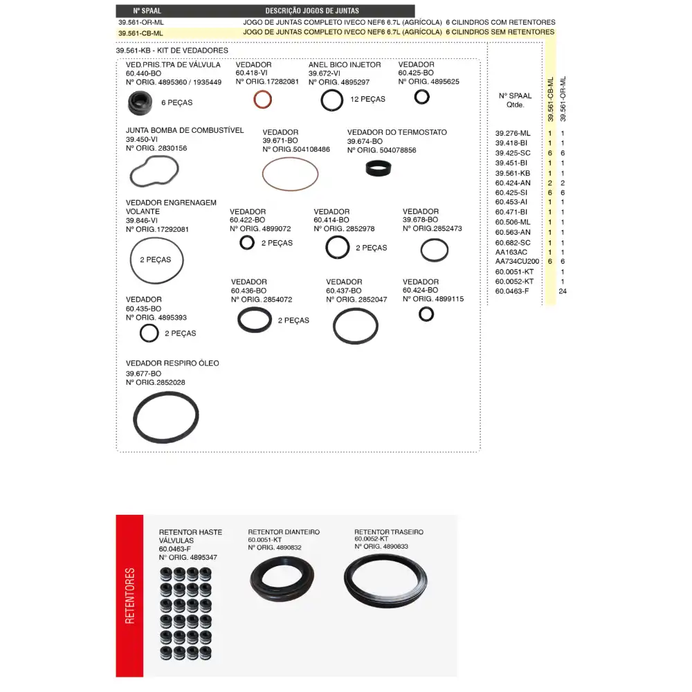 JOGO DE JUNTAS DO MOTOR SEM RETENTOR SPAAL - 39.561-CB-ML