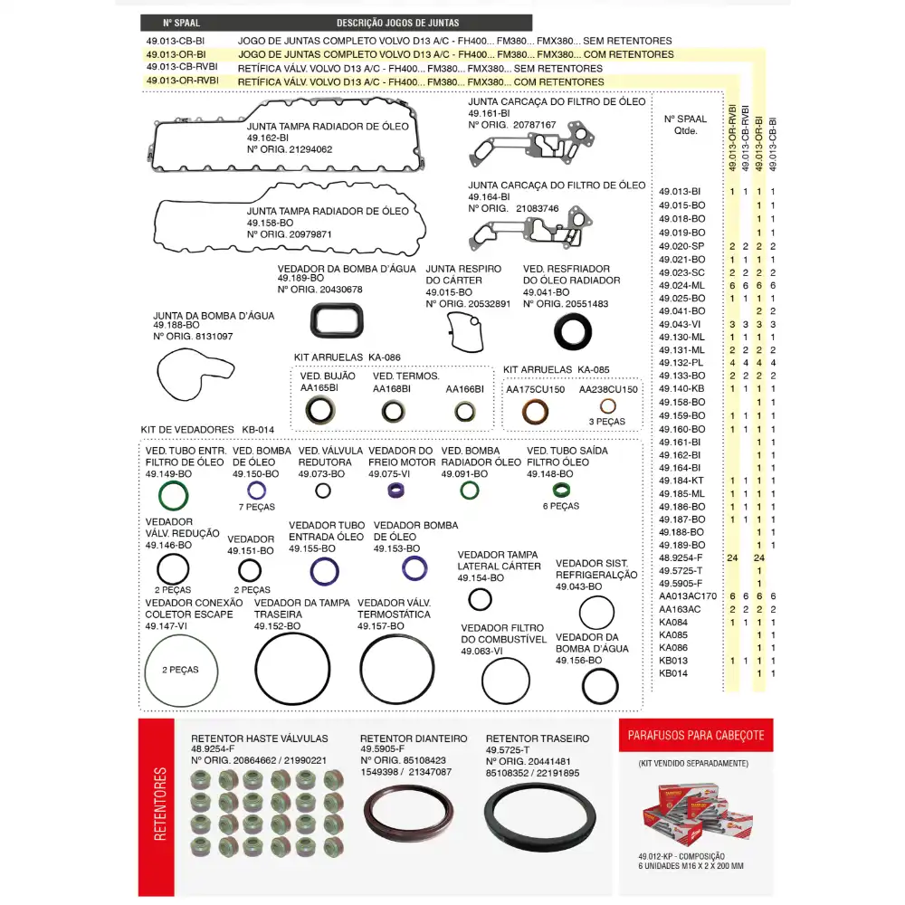 JOGO DE JUNTAS DO MOTOR SPAAL - 49.013-OR-BI