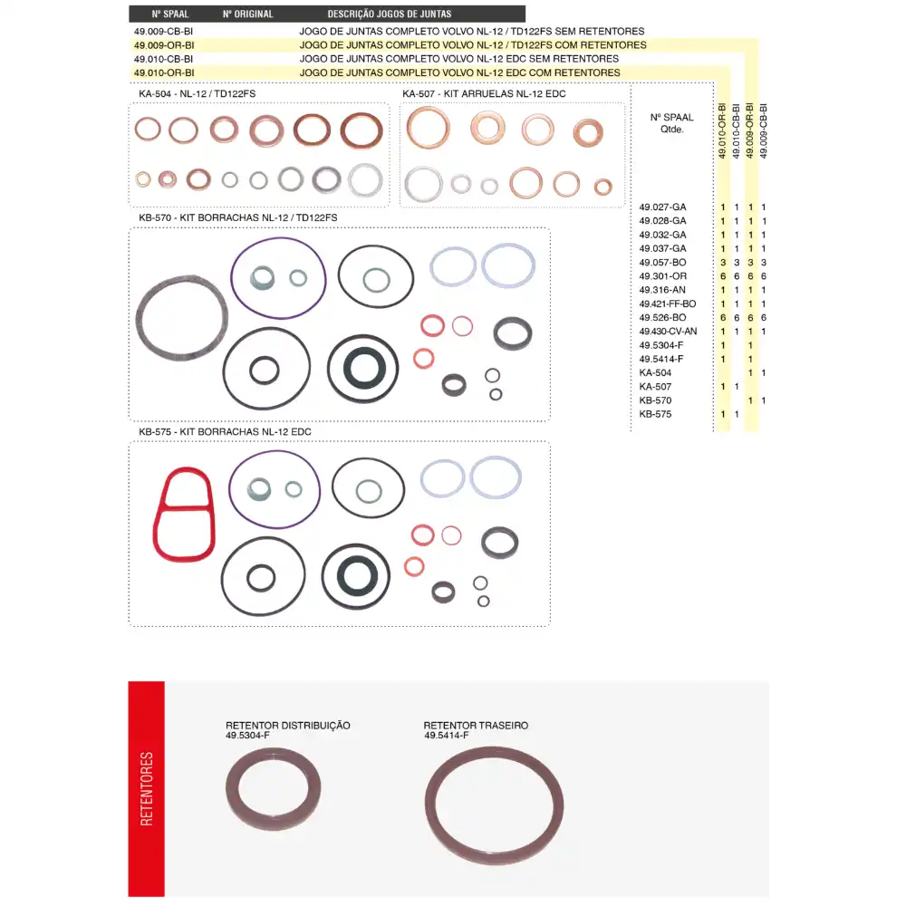 JOGO DE JUNTAS DO MOTOR SEM RETENTOR SPAAL - 49.009-CB-BI
