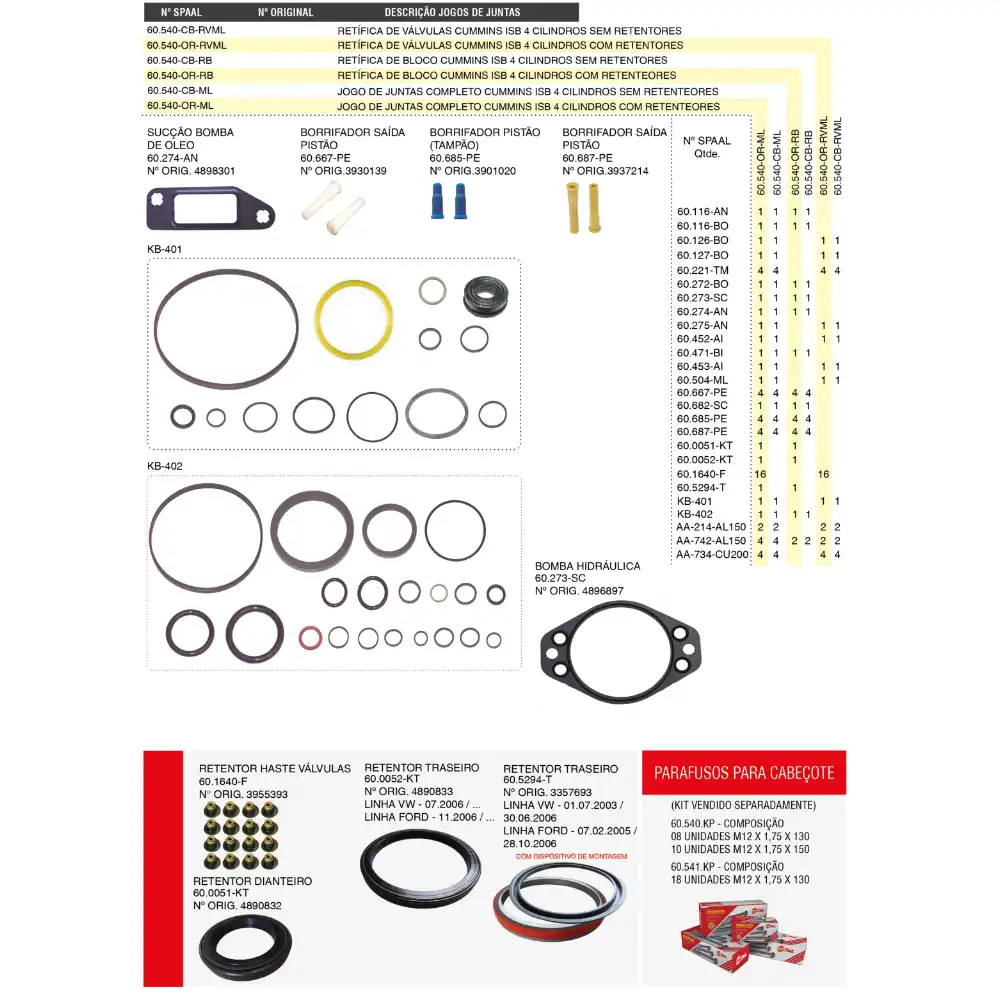 JOGO DE JUNTAS DO MOTOR SPAAL - 60.540-OR-ML