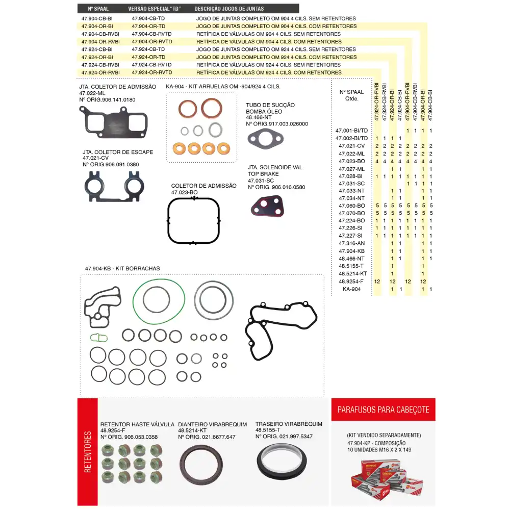 JOGO DE JUNTAS DO MOTOR SPAAL - 47.904-OR-BI